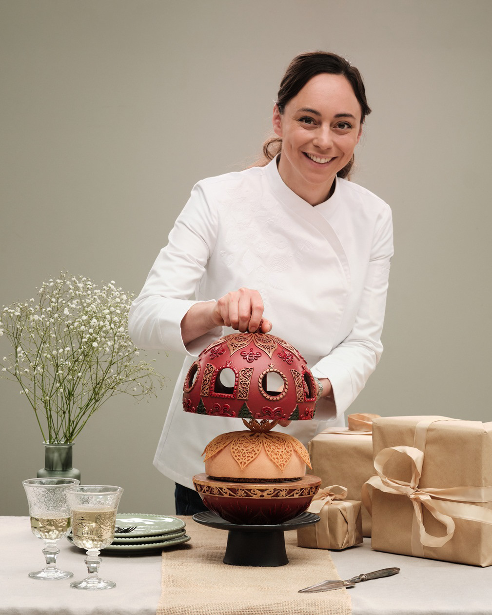 Pensée et réalisée sur mesure pour Nina Métayer, cette forme complexe mêle précision technique, poésie et équilibre visuel, dans une approche fidèle à son univers : raffiné, architectural et profondément gourmand.