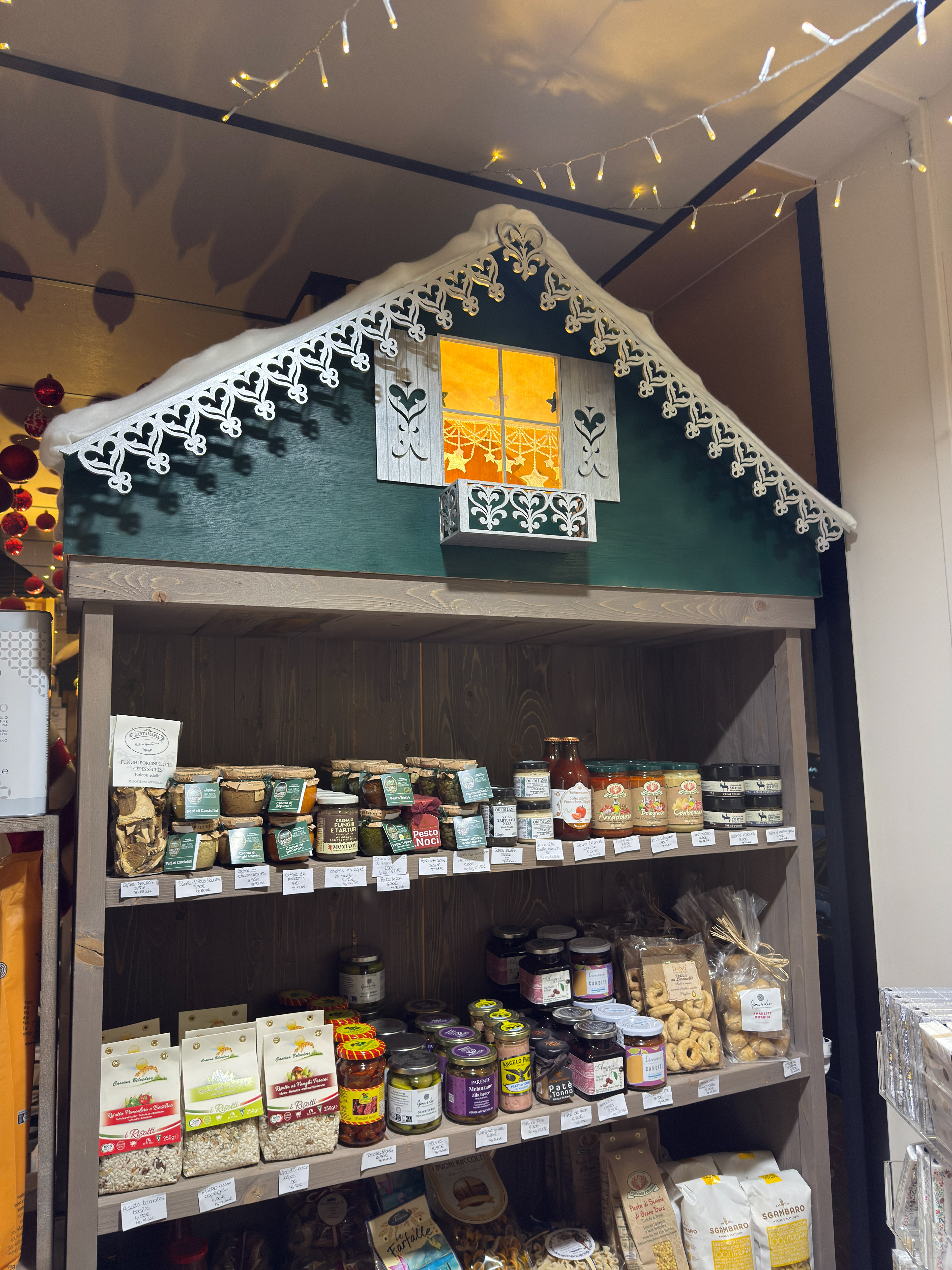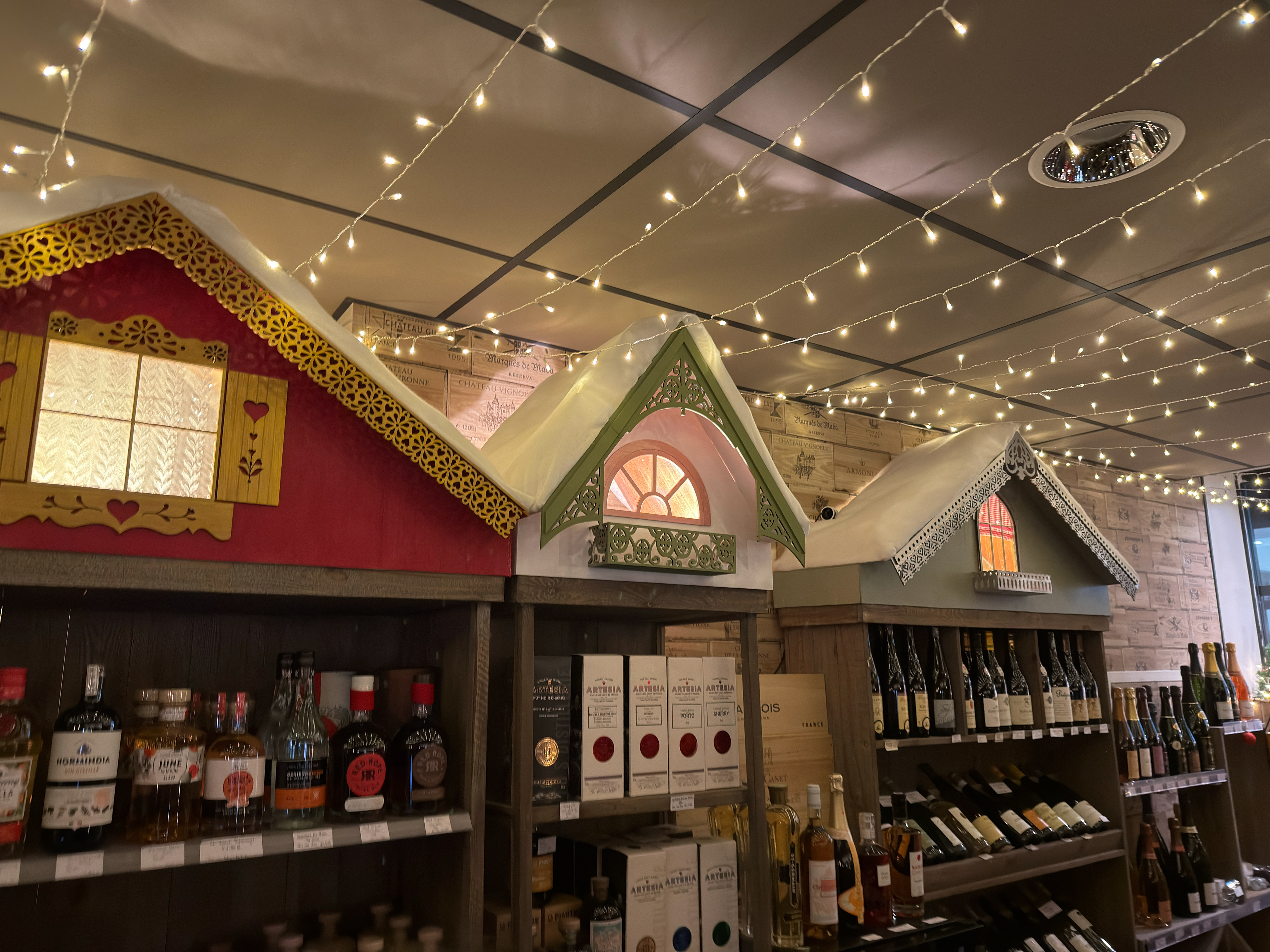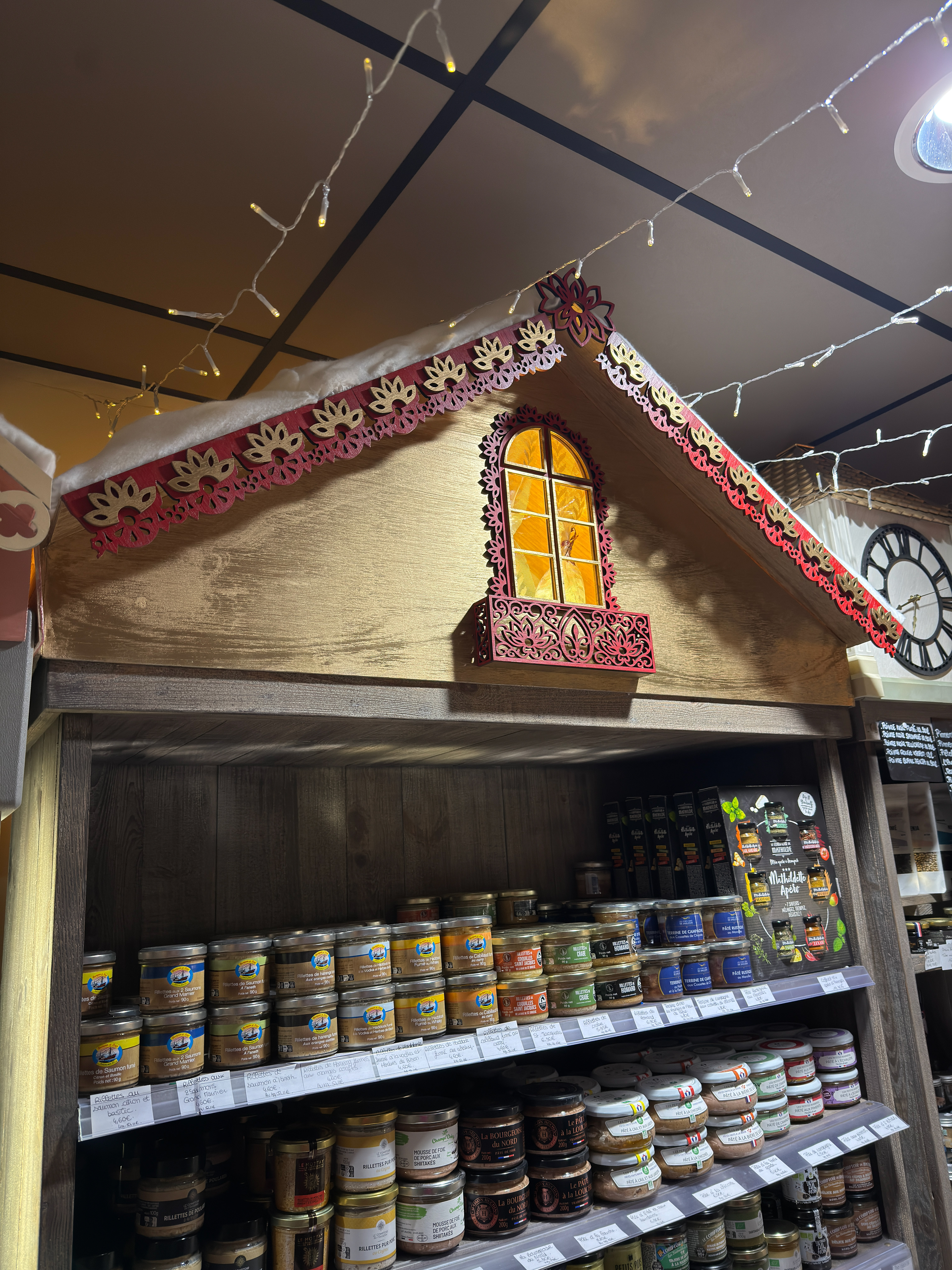 Les étagères sont devenues des chalets, formant un village coloré qui s’intégrait au décor existant de la boutique ❄️