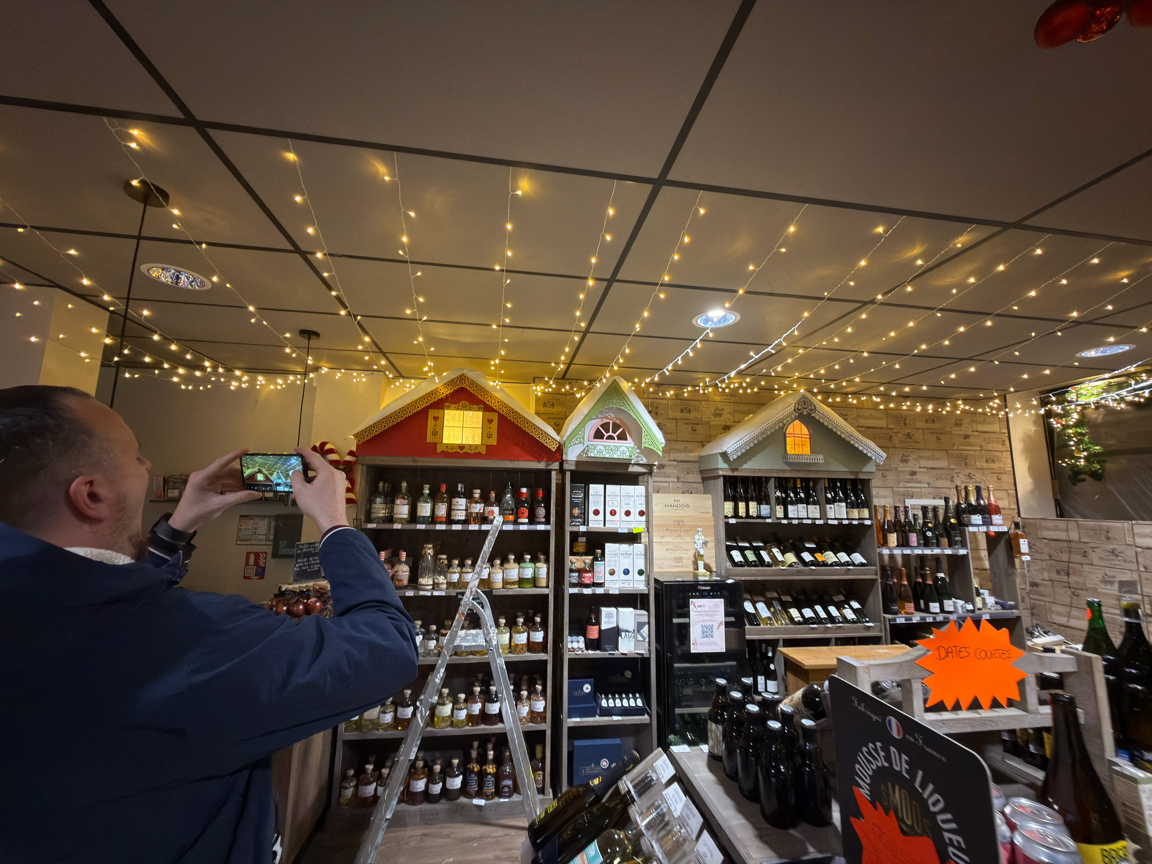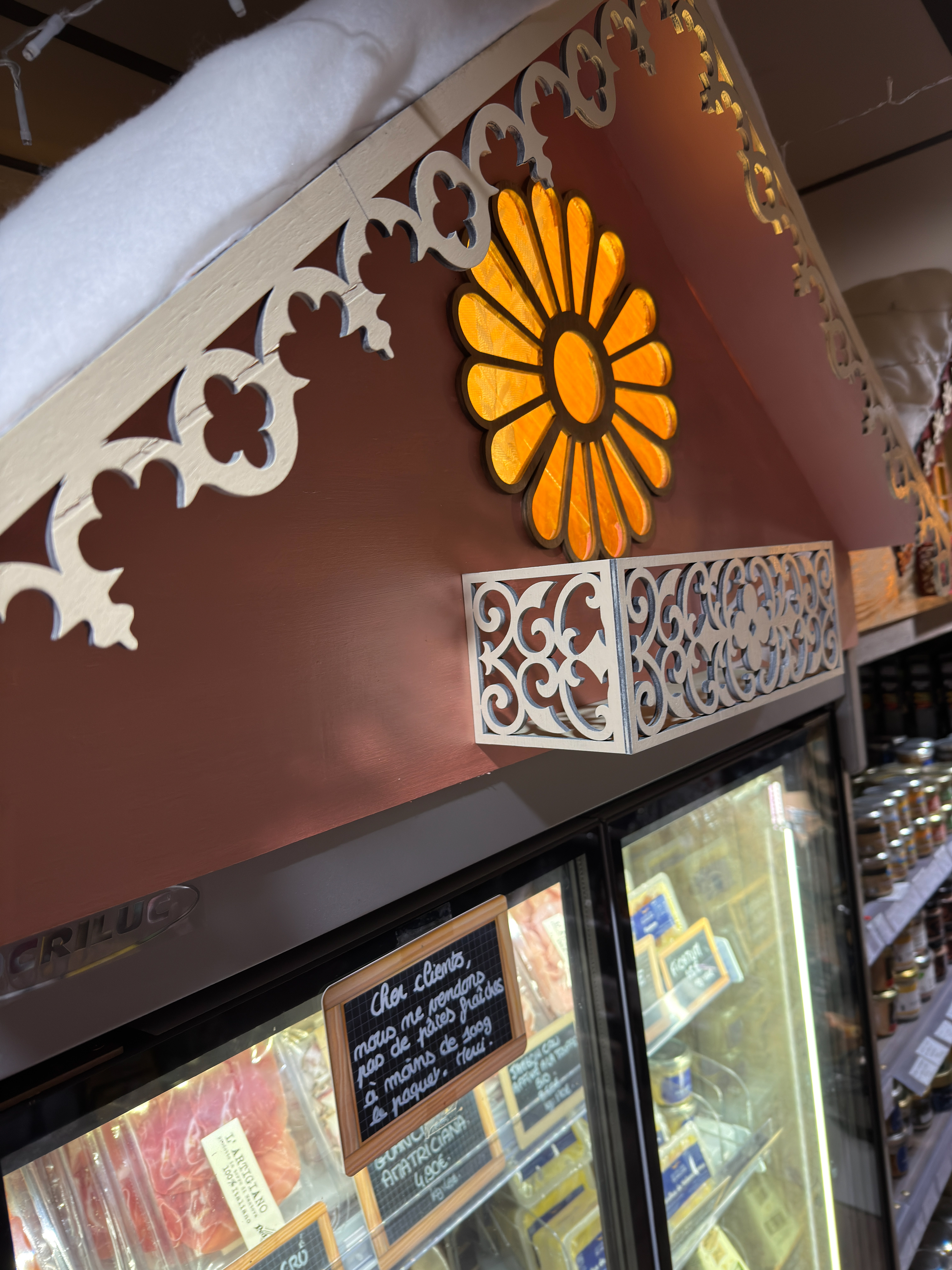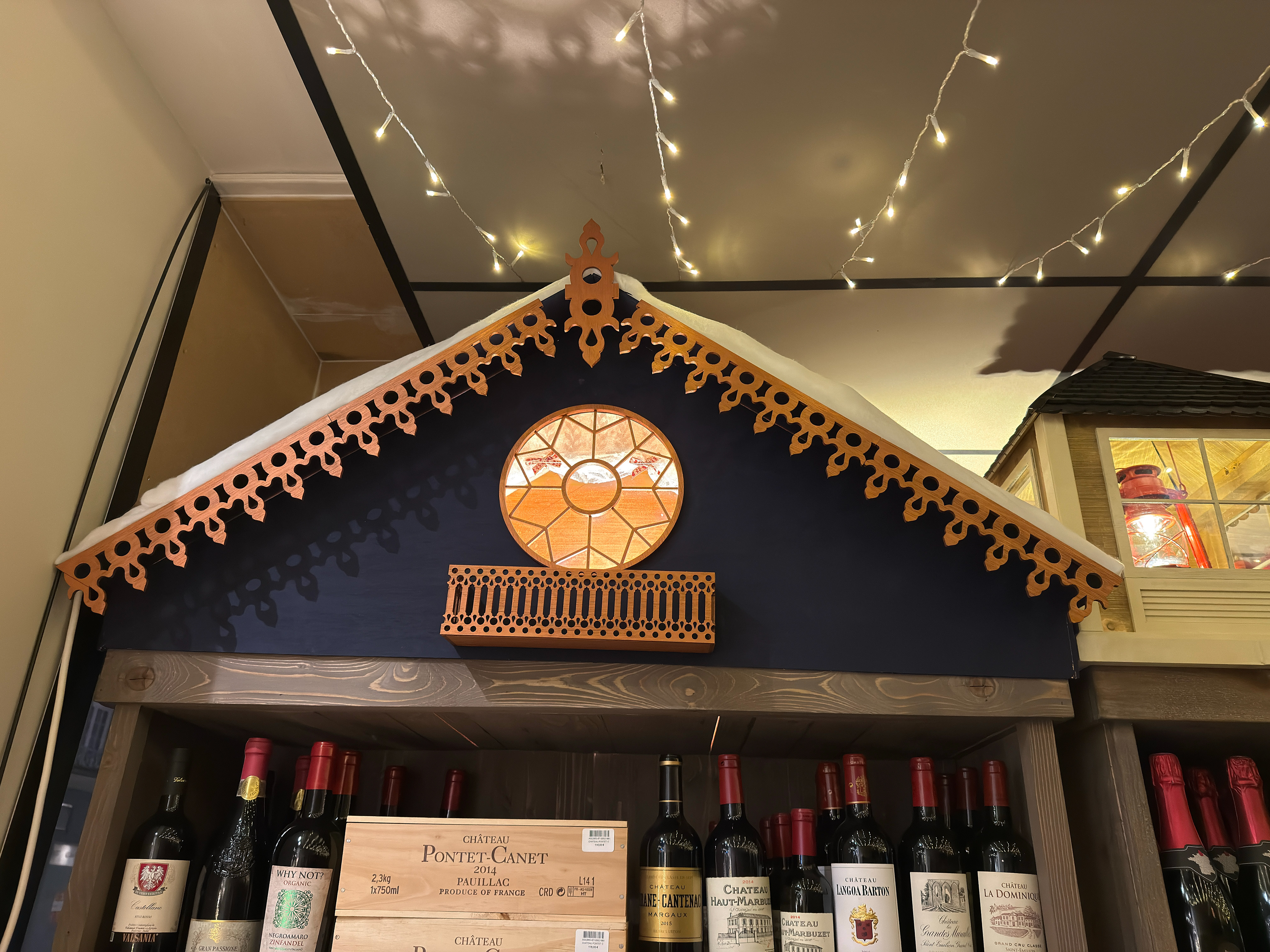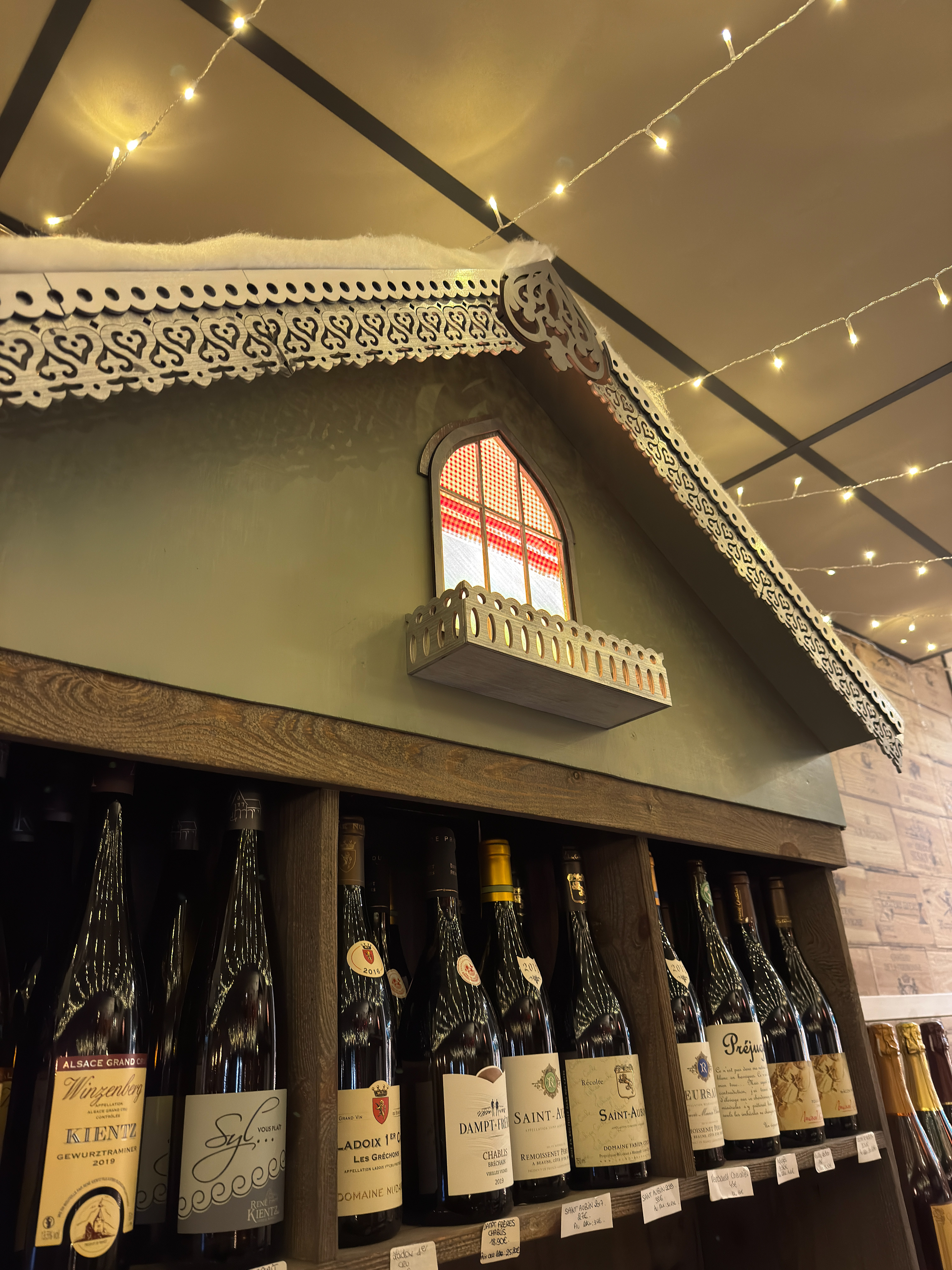 Les étagères sont devenues des chalets, formant un village coloré qui s’intégrait au décor existant de la boutique ❄️