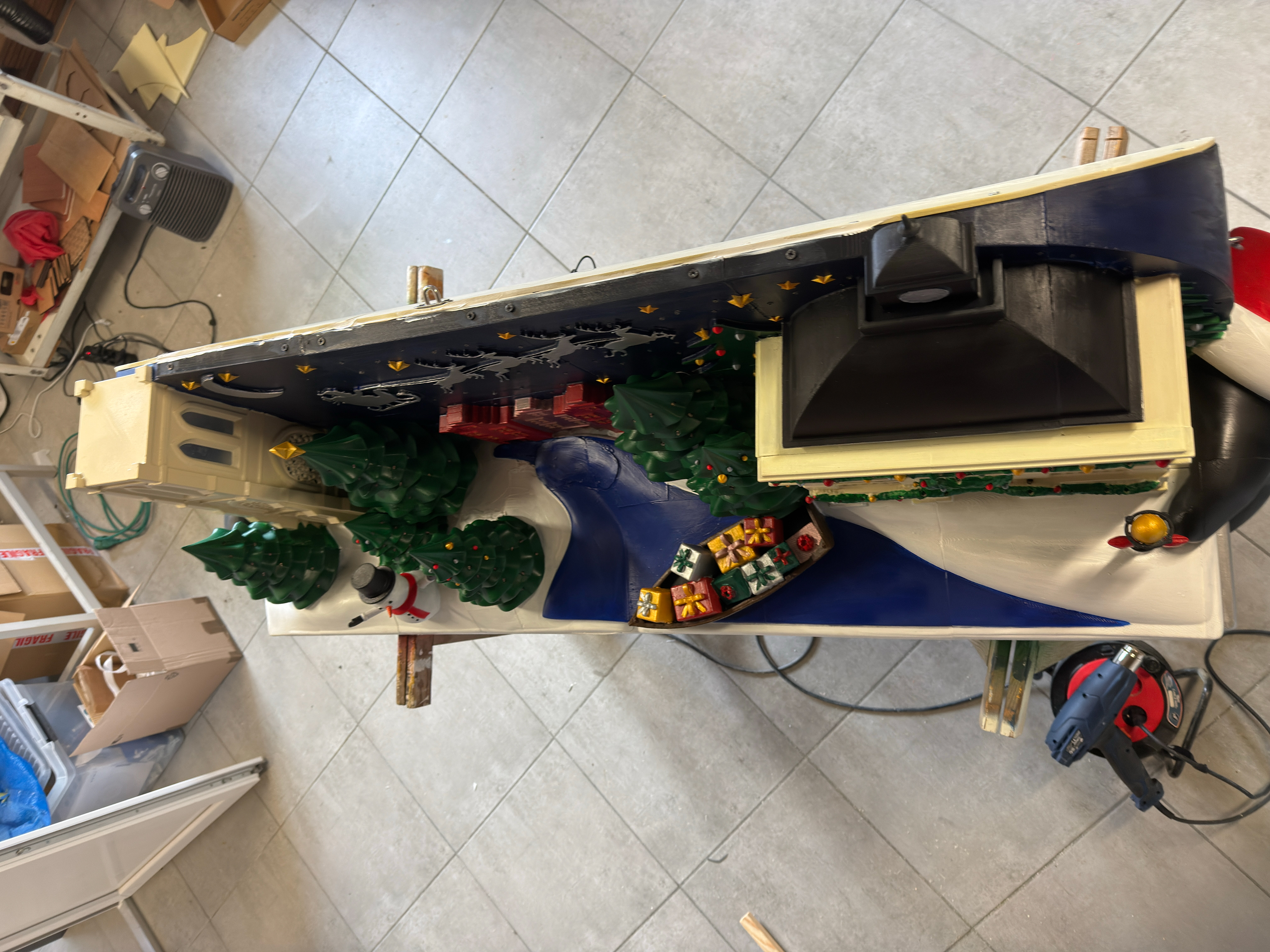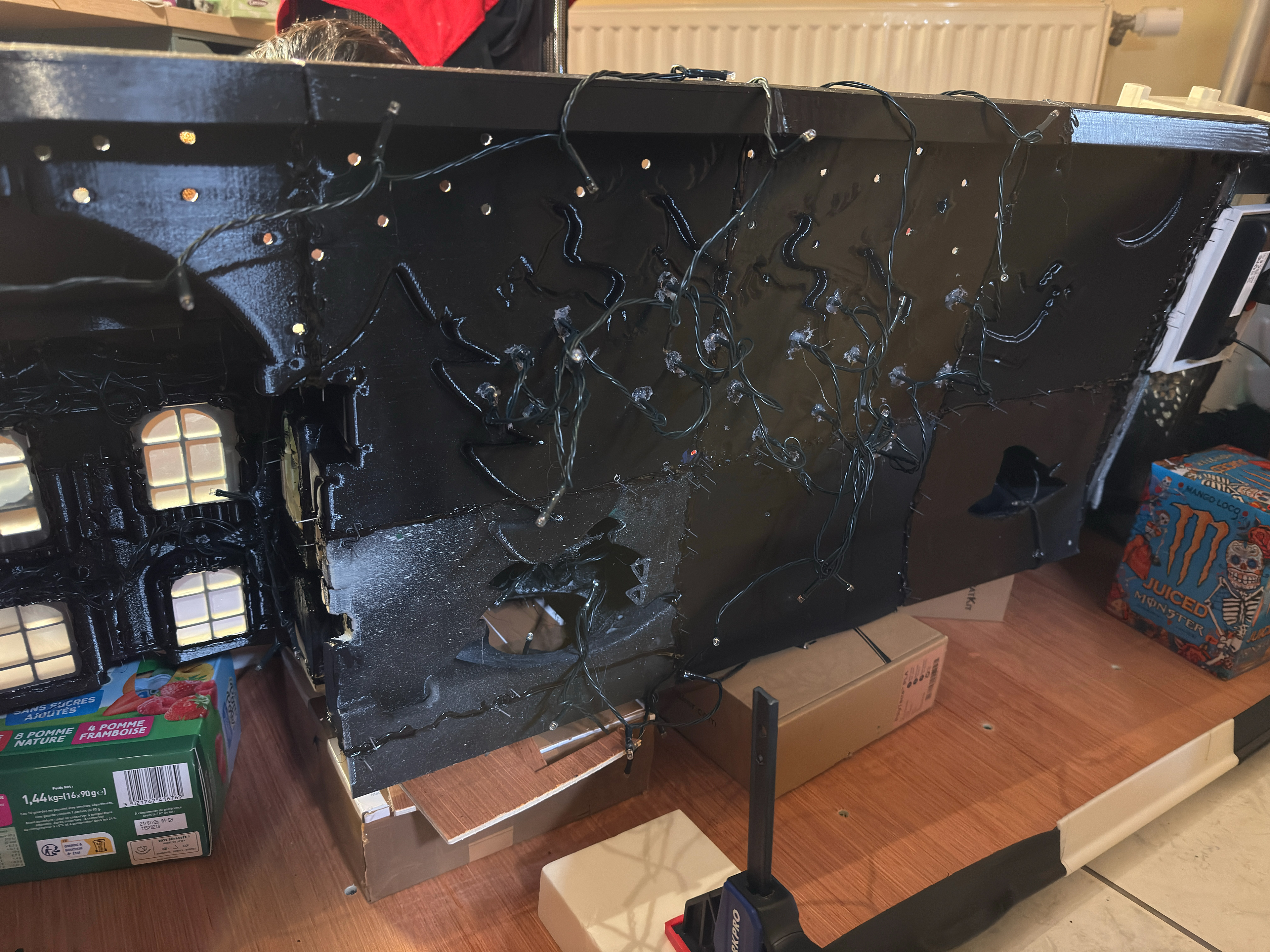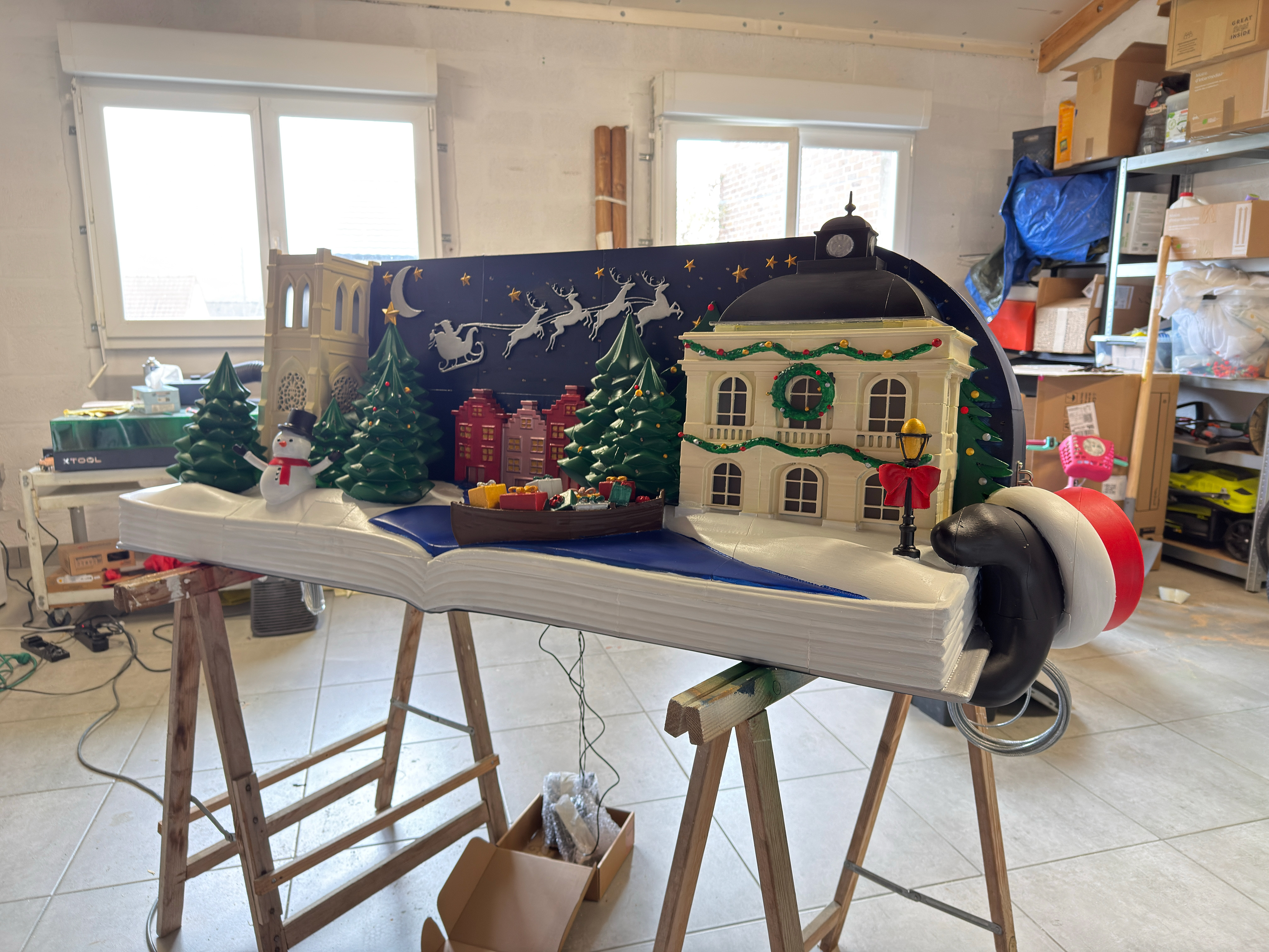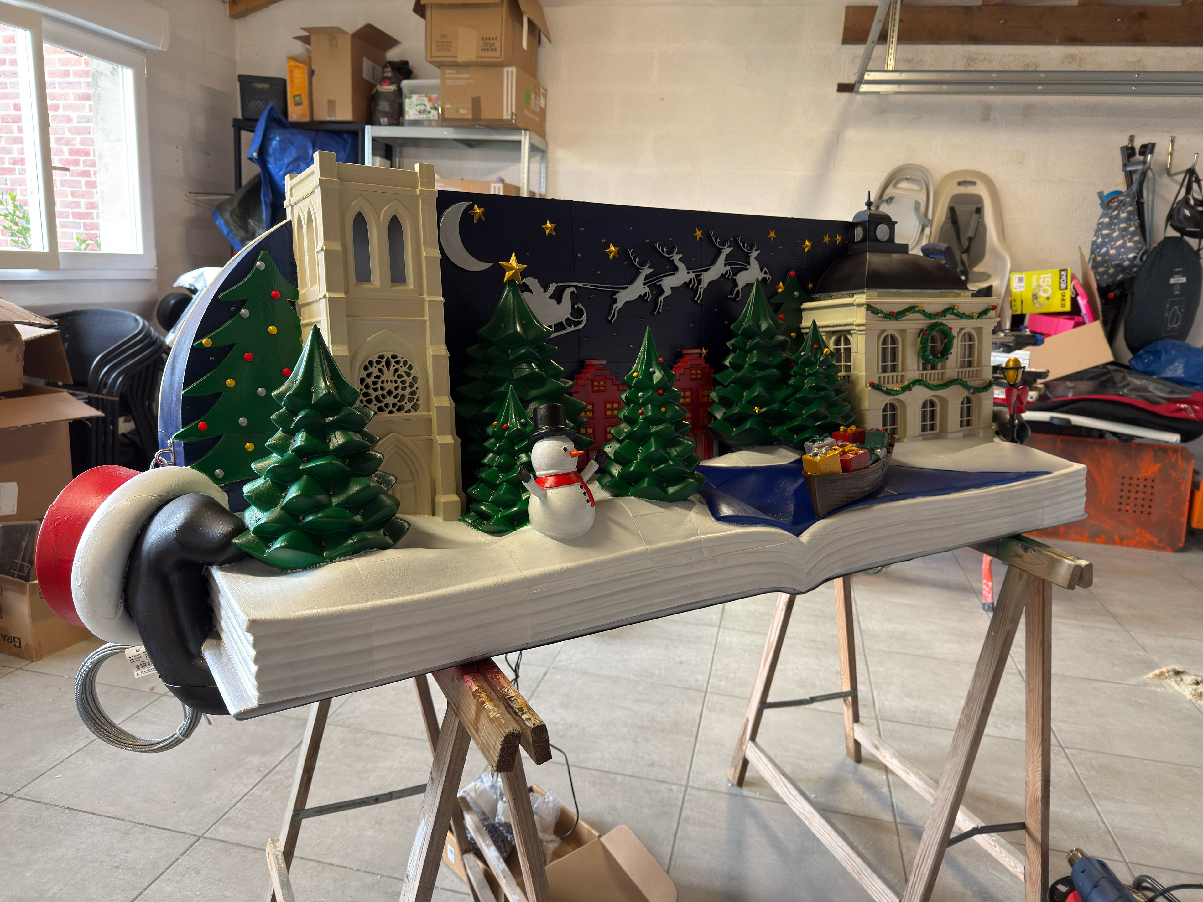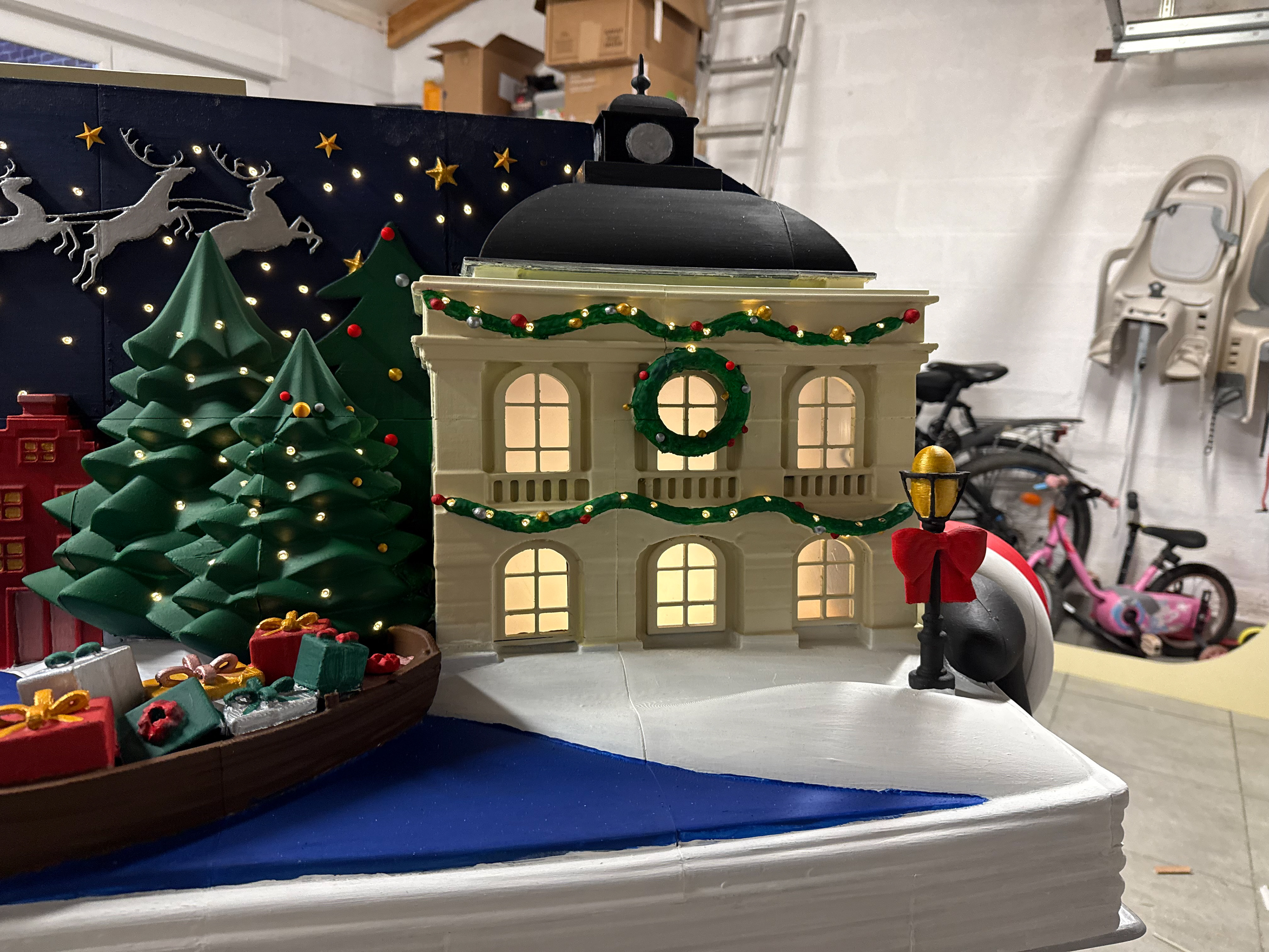 L’ensemble a été imprimé en 3D, puis assemblé, collé, poncé et peint à la main, avec une attention particulière portée aux proportions, aux détails architecturaux et à la lisibilité à distance.