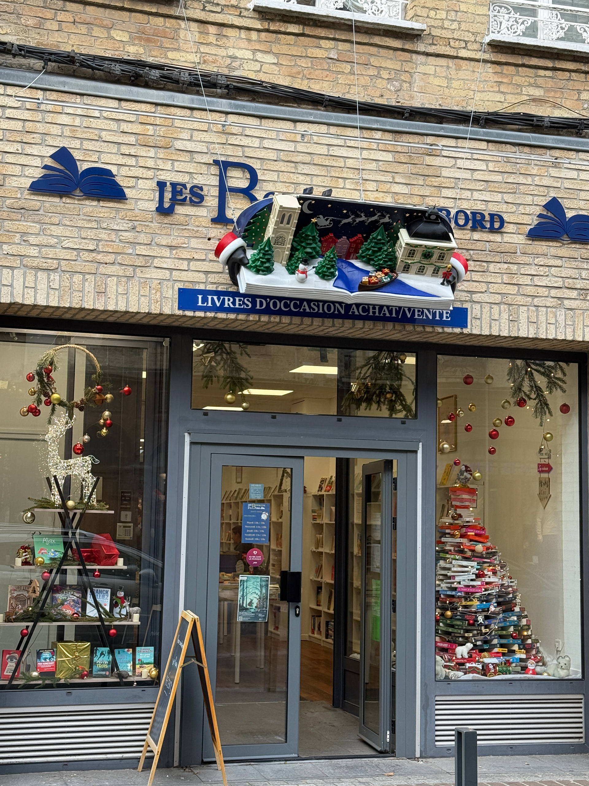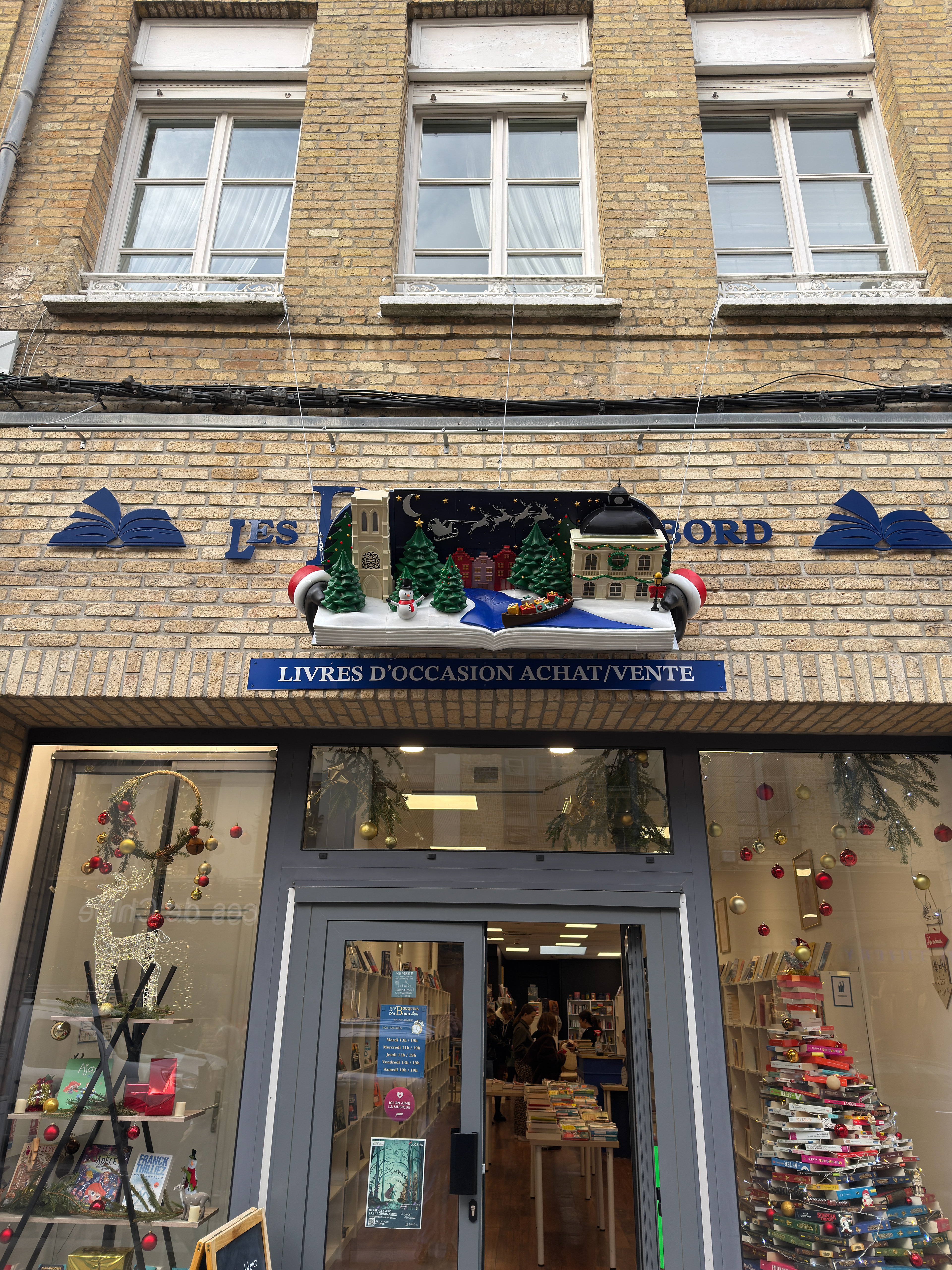 La scène met en volume plusieurs bâtiments iconiques de Saint-Omer, intégrés dans une composition narrative inspirée de l’univers du livre et de la vitrine.