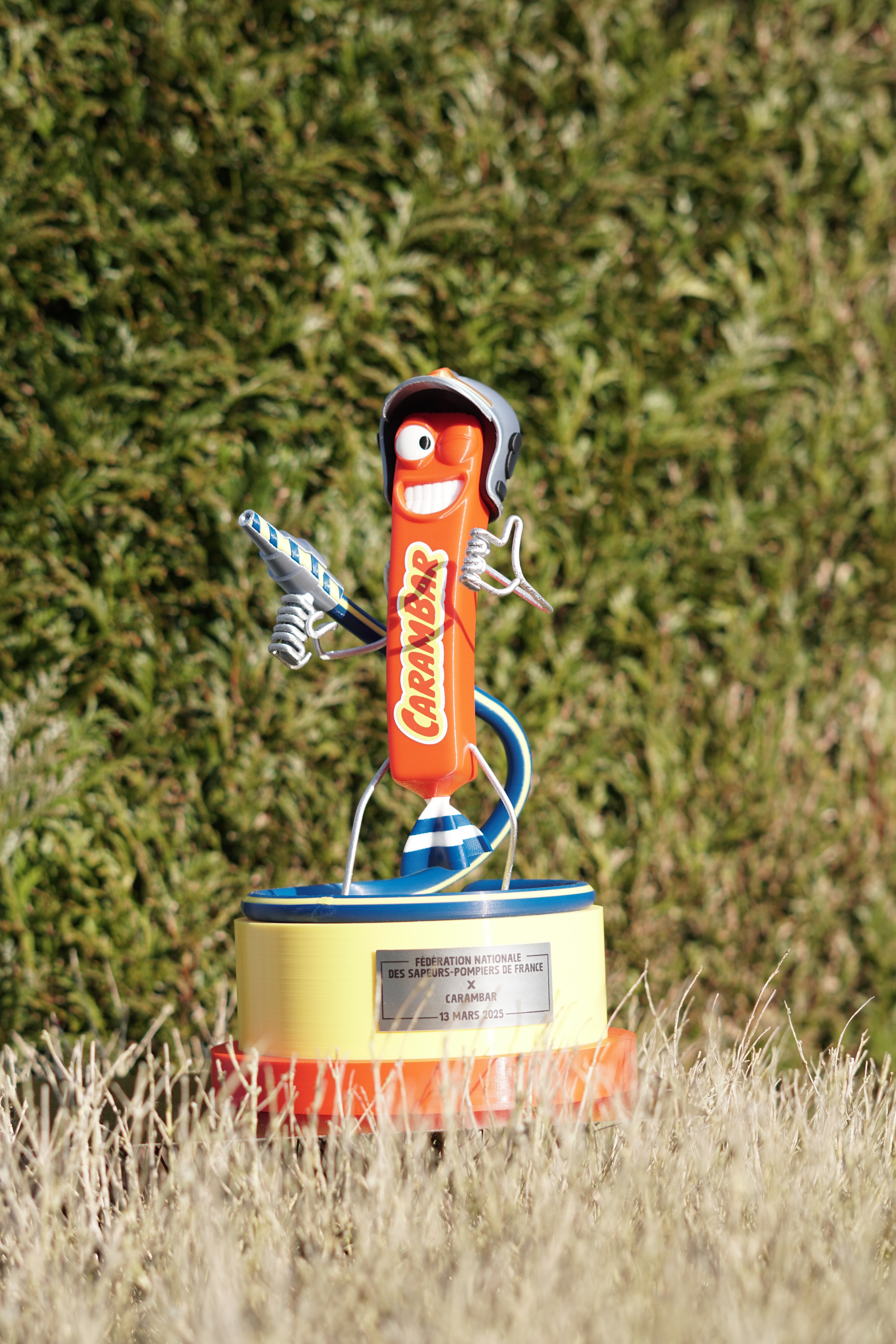 Pour ce projet unique, j’ai réalisé un Carambar Pompier sur mesure, répondant à des contraintes techniques importantes : un corps soutenu par des membres très fins, tout en conservant stabilité et solidité.