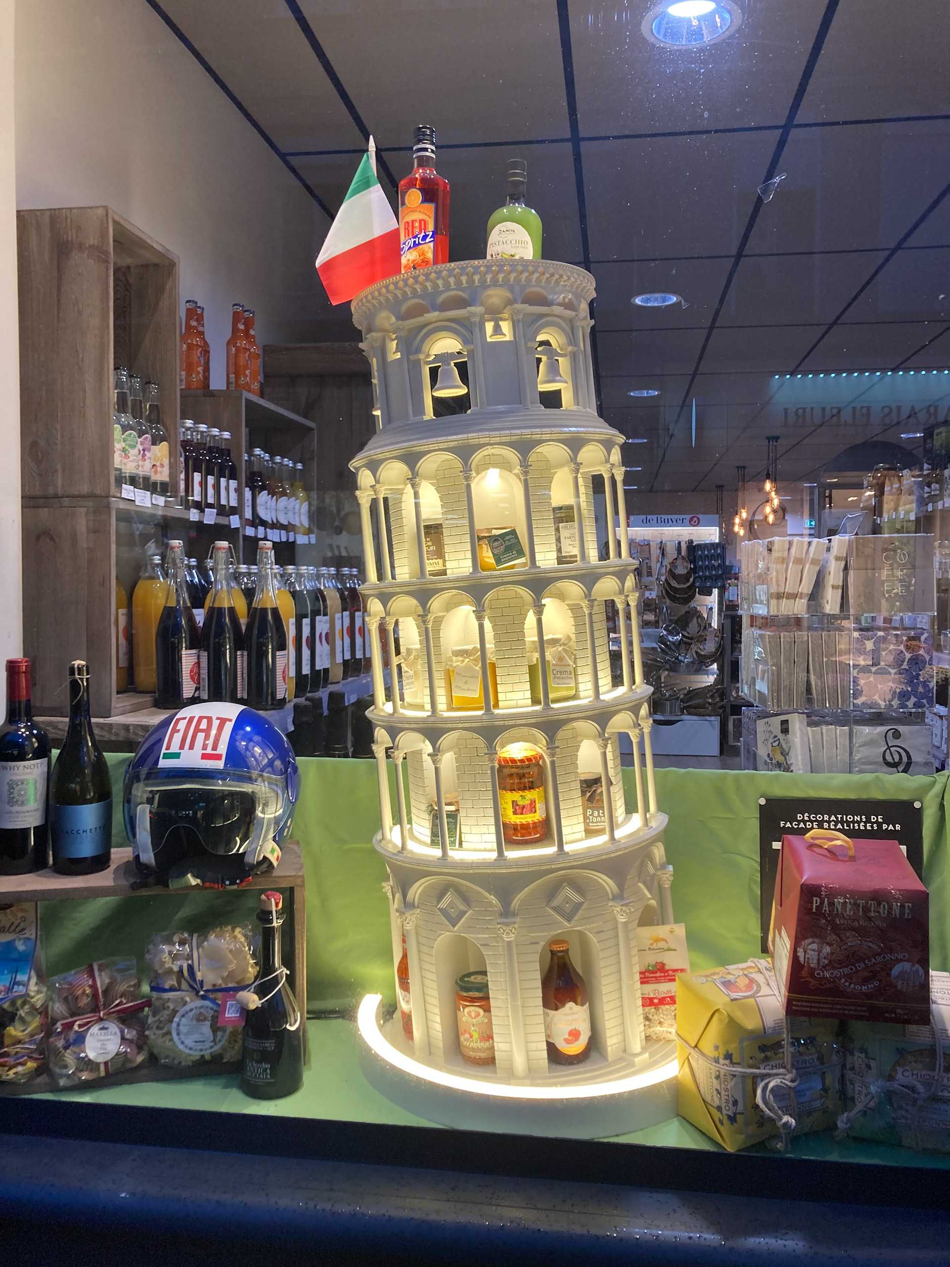 Réalisée à la demande de François Pocquet pour la boutique Les Délices de Chloé, cette création avait pour objectif de mettre en valeur leurs produits en vitrine à l’occasion de leur mois italien.